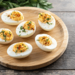 Punjena jaja s kremastim filom jedno su od najklasičnijih hladnih predjela koje se priprema za Novu godinu, rođendane i druga svečana okupljanja. Jednostavna su, dekorativna i vrlo ukusna, a za pripremu je potrebno svega nekoliko sastojaka. Ovaj recept donosi najpopularniju verziju: lagani krem od žumanaca, majoneze i senfa koji savršeno odgovara uz sve ostale hladne zalogaje na prazničnoj trpezi.